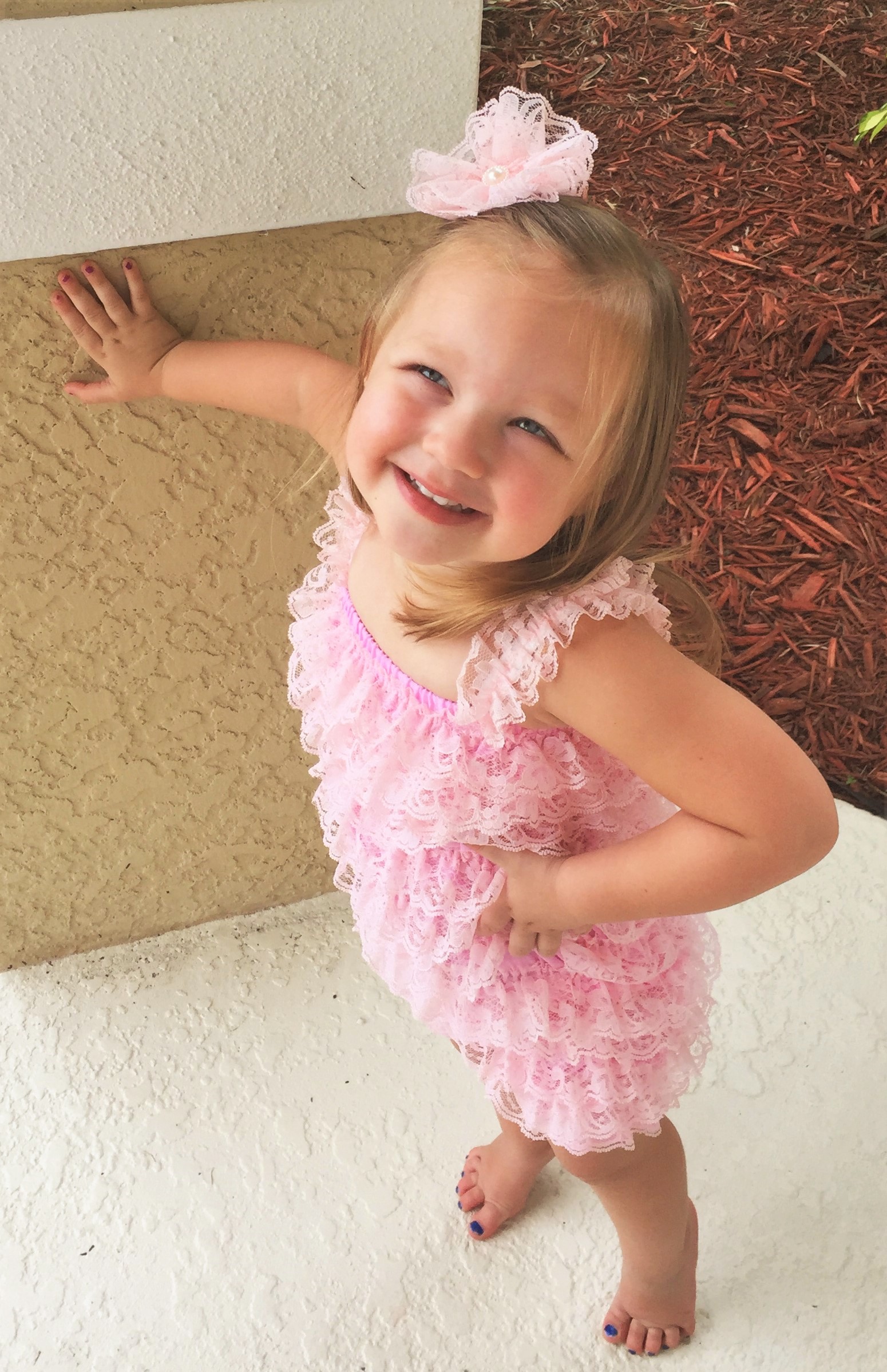 Adorable lace Petti Rompers are cute and comfortable. Perfect for that special occasion or everyday! They are super stretchy, and oh so sweet! * Includes matching Vintage lace hair clip.