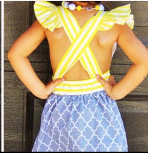 ~~~ON SLAE~~~ Cute Cute Cute!!! Yellow striped top with ruffle sleeves criss cross, revealing an open back. grey and white contrasting skirt, PERFECT for those long summer days! ***runs a bit small***